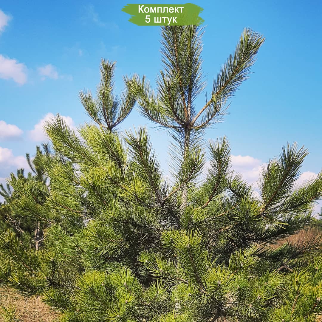 Предлагаем набор из пяти молодых саженцев крымской сосны, каждый из которых достигает высоты до 15 см. Это выгодное предложение, так как вы получаете пять саженцев по цене четырех.