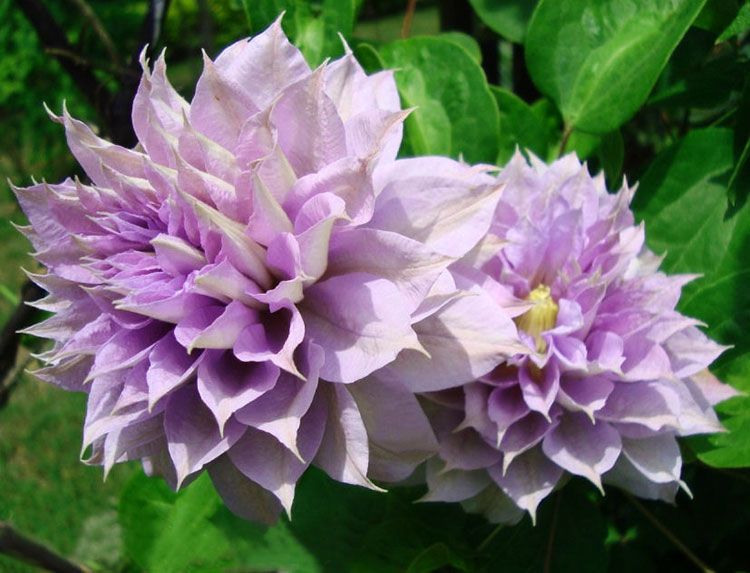 Растение вьется и достигает высоты от 2 до 3 метров. Цветки крупные, махровые, серебристо-лилового оттенка, что придает им особую элегантность. На прошлогодних побегах цветки имеют серо-стальной оттенок и махровую структуру.
