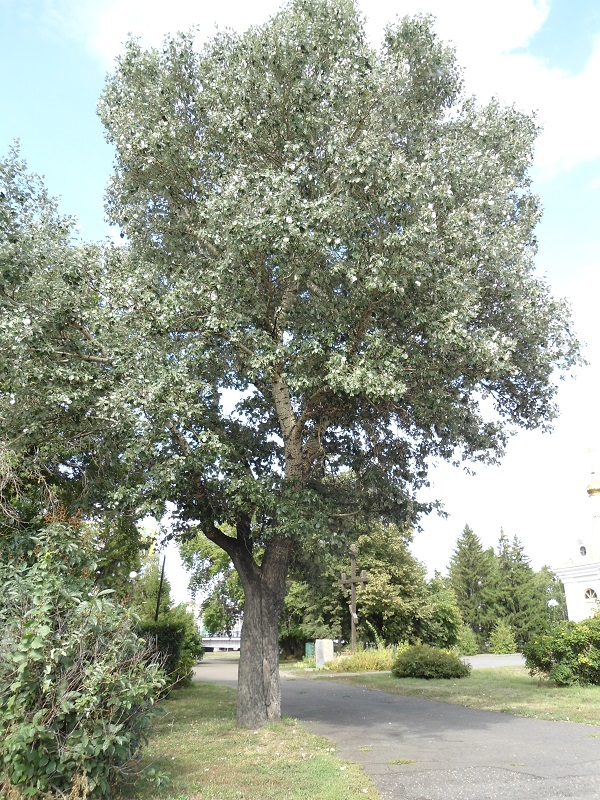 Тополь белый — это дерево с широкой раскидистой кроной, достигающее высоты до 30 метров. Его кора серо-зеленая и гладкая, с возрастом покрывается глубокими трещинами. Молодые побеги имеют бело-войлочное опушение. Листья плотные, от овальных до пальчато-лопастных, с крупными зубцами, сверху темно-зеленые и блестящие, а снизу опушенные и бело-войлочные. Осенью листья приобретают лимонно-желтый оттенок. Тополь белый может расти в засушливых условиях, но предпочитает плодородные и хорошо увлажненные почвы, на которых растет быстрее. Его серебристая листва придает дереву высокую декоративную ценность.